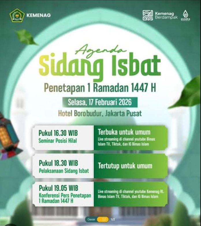- Pelaksanaan sidang isbat : Selasa 17 Februari 2026 pukul 18.30 WIB