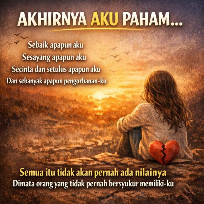 Dan yang paling penting, kita tidak perlu memaksa diri untuk tetap tinggal di tempat yang tidak pernah menghargai keberadaan kita. Karena pada akhirnya, nilai diri kita tidak ditentukan oleh bagaimana orang lain melihat kita…