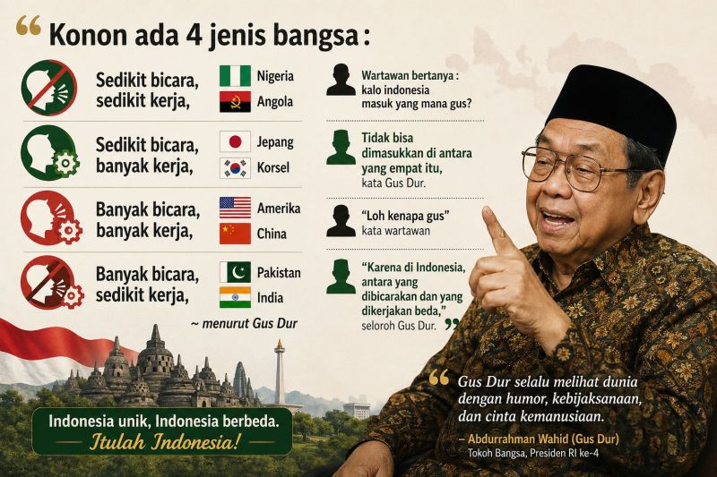 Lintas24jam.com – Gus Dur ditanya wartawan, apa sih yang membedakan bangsa kita dengan yang lain di dunia?